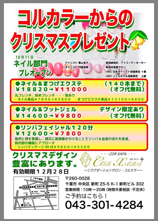 本年度もリラクゼーションサロンCOR XAPAをよろしくお願い致します。